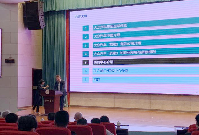 為深入開展大眾汽車(安徽)有限公司與合肥學院的合作,協同推進校企合作培養人才,4月26日上午,大眾汽車(安徽)在我校圖書館報告廳A廳召開校園宣講會,此次宣講會由大眾汽車有限公司首席人力資源官卲劍主持,大眾公司首席技術官呂爾曼、首席制造官施耐德、人力資源負責人曹垚、效率管理總監朱江萍來校宣講,我校教務處、國際交流合作處、先進制造工程學院、人工智能與大數據學院等單位負責人,先進制造工程學院和人工智能與大數據學院部分大三大四學生參加會議。