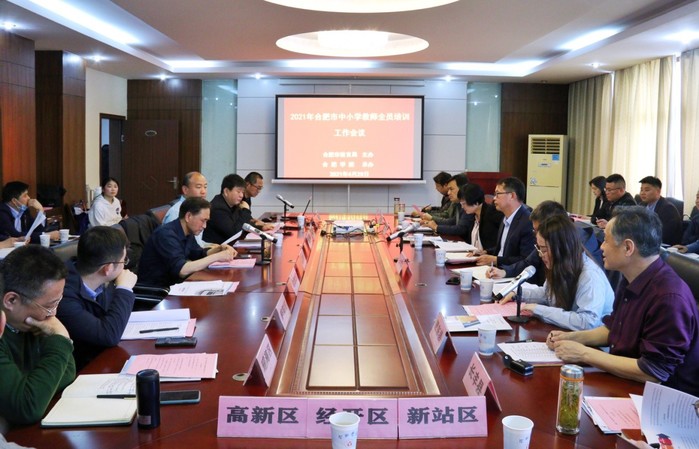 由合肥市教育局主辦、我校承辦的2021年合肥市中小學教師全員培訓工作會議于4月29日下午在我校黃山路校區召開。合肥市教育局及12個縣(市)區教育主管部門師訓負責人,中國教師研修網、中國教師教育網、北京奧鵬教育、安徽開放大學、合肥幼兒師范高等專科學校、合肥學院等培訓單位的相關人員參加本次會議。會議由合肥市教育局教師事務管理中心張崇璟老師主持。
