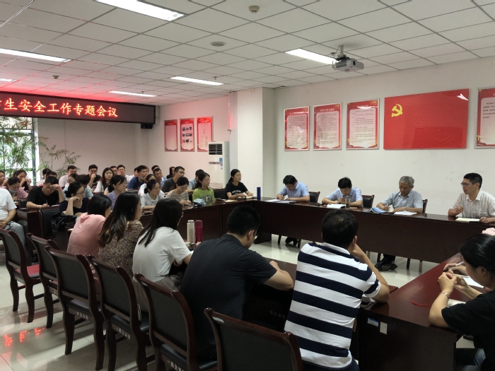 6月15日下午,學校在行政樓第一會議室召開學生安全工作會議。教務處副處長儲忠、王仁寶,學生處副處長張應杰和全體輔導員參會,會議由校黨委委員、學生處處長朱濤主持。