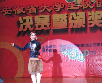 我院團(tuán)委認(rèn)真貫徹團(tuán)省委下發(fā)的文件精神,于11月24、25日在校南區(qū)禮堂分別舉辦了校園歌手預(yù)決賽,前后共五百多人參加此次活動,吳墨君同學(xué)從中脫穎而出,經(jīng)老師指導(dǎo)和自身的努力,最終在安徽省31所高校的激烈角逐中榮獲業(yè)余組銀獎。