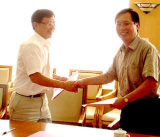 院長趙良慶、副院長丁明,教育系副主任劉健、張福全教授,開發區管委會副主任汪晴,社會發展局局長陳和平等出席簽約儀式。趙良慶院長和汪晴副主任分別代表雙方在合作辦學協議書上簽字。