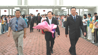 接著,金夏中大使來到禮堂,為我院近1500名師生作“攜手共創(chuàng)中韓關(guān)系美好未來”演講。金夏中大使在演講前幽默詼諧地解讀自己的名字說:“夏即華夏的夏,中即中國(guó)的中,說明我與中國(guó)很有緣分。”2002年,金夏中大使曾經(jīng)訪問過安徽,通過這次訪問,他覺得安徽的變化很大。他說,非常珍惜這次訪問機(jī)會(huì),安徽出了很多名人,韓國(guó)與安徽的交流處于起步階段,想多走走看看,多了解安徽,安徽為中國(guó)的改革開放作出過很多貢獻(xiàn),也反映了安徽人民的精神。他在演講中從韓國(guó)的經(jīng)濟(jì)發(fā)展,韓劇《大長(zhǎng)今》、《我的野蠻女友》等曾在中國(guó)流行的韓國(guó)電視劇談到韓國(guó)的飲食和電子、汽車工業(yè);從中國(guó)的滾滾“韓流”和韓國(guó)的陣陣“漢風(fēng)”談到韓中文化的交互融合;從他個(gè)人學(xué)習(xí)漢語和出任駐中國(guó)大使談到他與中國(guó)的不解之緣;從韓中的發(fā)展歷史談到中國(guó)國(guó)家主席胡錦濤訪問韓國(guó)時(shí)與韓國(guó)總統(tǒng)盧武鉉達(dá)成的共識(shí)“在政治上,中韓兩國(guó)應(yīng)該成為不同社會(huì)制度國(guó)家和平共處的典范。”