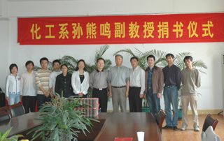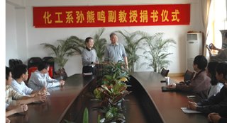 4月30日上午,我院退休教師、原化學(xué)與材料工程系副主任孫熊鳴副教授捐書儀式,在我院北區(qū)行政樓會(huì)議室隆重舉行。化學(xué)與材料工程系主任邵國(guó)泉教授、教務(wù)處副處長(zhǎng)董強(qiáng)副教授及該系部分師生近20人參加捐書儀式。