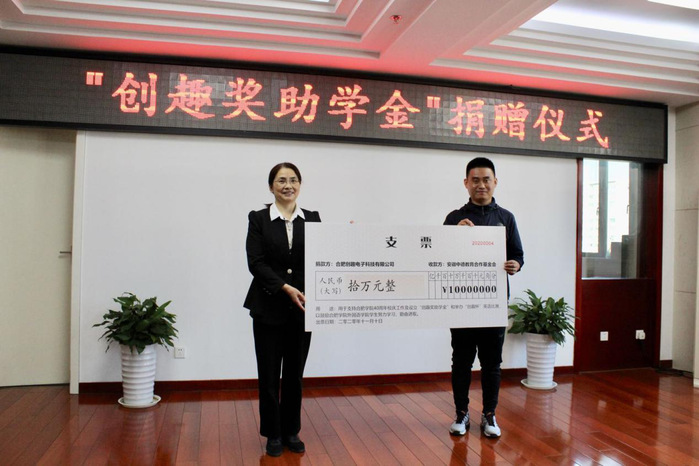 Auf der Spendenzeremonie unterzeichneten die beiden Seiten die Spendenvereinbarung. Fang Chengjun überreichte der Stiftung den Spendenscheck im Namen von Hefei Chuangqu Elektrotechnik Co., Ltd. Im Namen der Stiftung verlieh Chen Xiu die Spendenurkunde an Hefei Chuangqu Elektrotechnik Co., Ltd.
