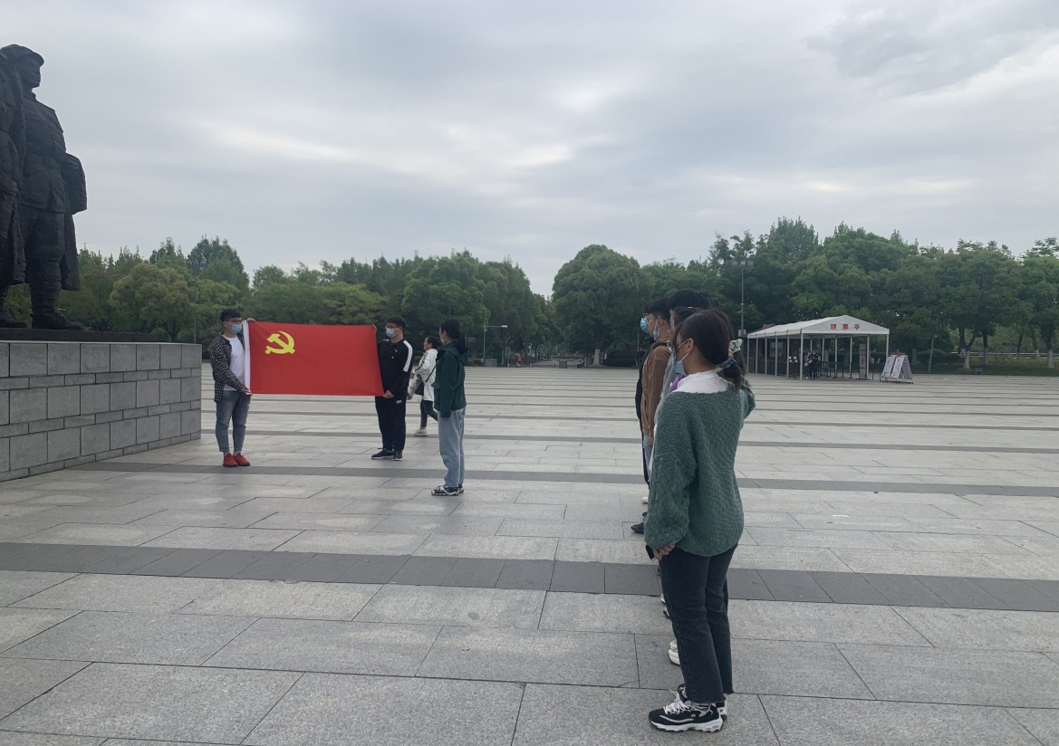 最后,11名黨員來到渡江戰役總前委雕像前進行莊重的入黨宣誓,銘記歷史,不忘初心,牢記使命!
