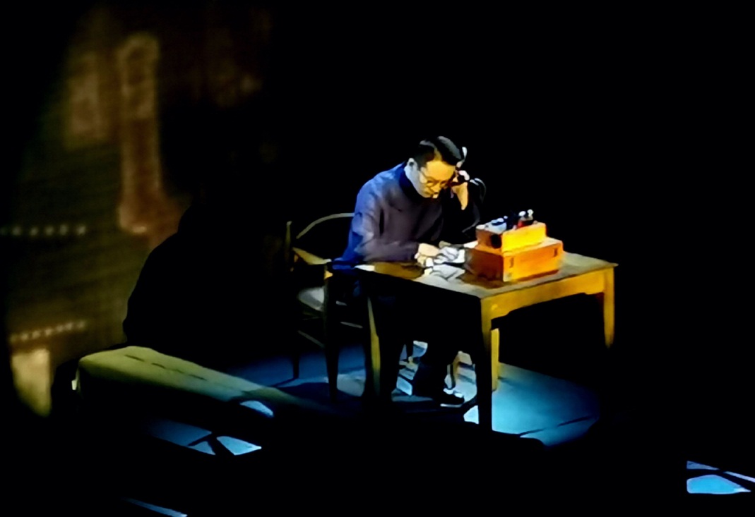 參觀結束后,黨員們來到一樓大廳,靜待話劇《永不消逝的電波》的開始。這部話劇以中共地下黨李白烈士為原型進行創作,講述了中共黨員李白化名“李俠”潛伏于上海,為延安輸送情報的故事。在解放戰爭即將取得最后的勝利,在他撤離前夕,李俠得到兩份重要情報,他為將兩份情報發送出去,讓妻子帶著兒子轉移,自己則堅守在工作崗位上。在敵人即將到來的危急時刻,李俠爭分奪秒堅持將情報發完,敵人的槍口對準了李俠,李俠鎮定地將電報稿吞進肚里,向戰友們深情地發出最后的話:“同志們,永別了,我想念你們?!?nbsp;
