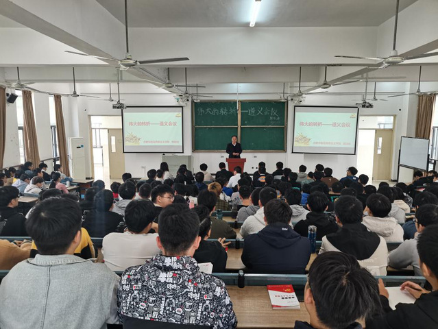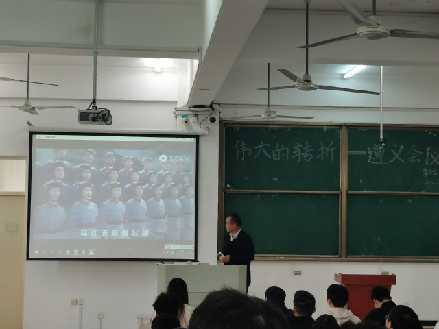 最后,郭劍峰老師從多個方面闡述了遵義會議的歷史意義:遵義會議是中國共產黨歷史上一次重要的會議,在極端危急的歷史關頭,挽救了黨,挽救了紅軍,挽救了中國革命,在中國共產黨和紅軍的歷史上,是一個生死攸關的轉折點。 郭劍峰老師還對廣大學子提出了殷切的期望,他說:“長征永遠在路上,每一代人都有每一代人的長征路,每一代人都要走好自己的長征路,希望大家都能夠在新的長征路上續寫新的篇章,創造新的輝煌。”