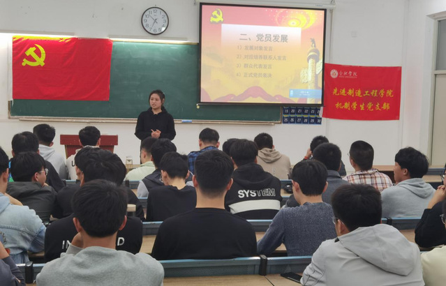 2021年10月28日18:30,合肥學(xué)院先進(jìn)制造工程學(xué)院機(jī)制學(xué)生黨支部于35號(hào)樓205教室舉行2021年下半年預(yù)備黨員發(fā)展大會(huì),大會(huì)旨在吸納優(yōu)秀積極分子、壯大支部黨員隊(duì)伍、吸納新鮮血液,為支部更好地發(fā)展打下堅(jiān)實(shí)的基礎(chǔ)。支部6名正式黨員和19名預(yù)備黨員以及5位群眾代表參與了本次會(huì)議。本次會(huì)議由支部書(shū)記威力旺主持,會(huì)議宣布主題為討論決議新預(yù)備黨員接收問(wèn)題,并通報(bào)了支委會(huì)研究意見(jiàn):本次會(huì)議應(yīng)參加黨員7名,因病、因事請(qǐng)假1名,實(shí)到會(huì)成員6名,超過(guò)黨員總數(shù)的80%,符合開(kāi)會(huì)條件。
