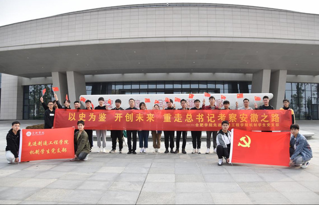 為進一步激發廣大師生愛黨、愛國、愛社會主義的熱情,營造迎接、學習、宣傳黨的二十大的濃厚氛圍,合肥學院先進制造工程學院機制學生黨支部圍繞習近平總書記工作歷程和考察安徽的重要足跡,利用暑假組織師生通過實地探訪、歷史尋訪等方式,開展了“喜迎二十大,機制學生黨支部在行動”暑期大學生社會實踐活動,引導師生爭做學思踐悟習近平新時代中國特色社會主義思想的青年表率,充分體悟習近平總書記的人民情懷、世界胸懷和歷史擔當。