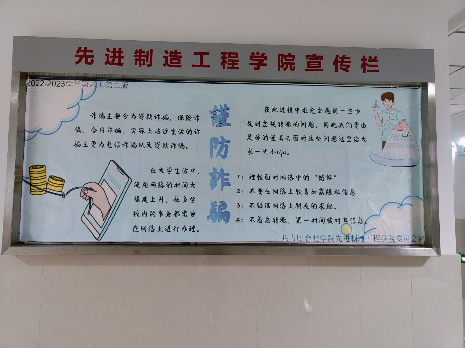 大學面向的受眾主要是大學生,在大學校園中宣傳欄教育是教育的重要載體。我院通過院團委的宣傳欄開展防范詐騙教育。簡要介紹了詐騙的基本類型,重點介紹網絡詐騙防范和提出四點防范建議。