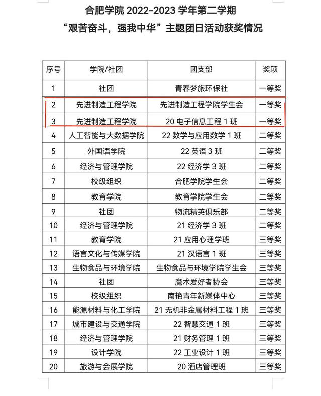 近日,校團委組織開展了2022-2023學年第二學期“艱苦奮斗,強我中華”主題團日風采展示。全校共有20個團支部和社團組織入選,經(jīng)過激烈角逐,最終我院學生會與20電子信息工程1班團支部均獲得了一等獎。