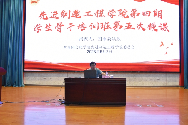 深入學(xué)習(xí)宣傳貫徹黨的二十大精神,教育引導(dǎo)學(xué)生自覺從黨的百年奮斗偉大成就和歷史經(jīng)驗(yàn)中增長智,增強(qiáng)信心,進(jìn)一步強(qiáng)化青年的政治品格,明確青年人的責(zé)任與使命2023年62日中午12點(diǎn)30分,先進(jìn)制造工程學(xué)院第四期學(xué)生骨干培訓(xùn)班第次授課在圖書館A報(bào)告廳順利舉行,并邀請(qǐng)團(tuán)合肥市委副書記洪欣為學(xué)干班的學(xué)員進(jìn)行授課。