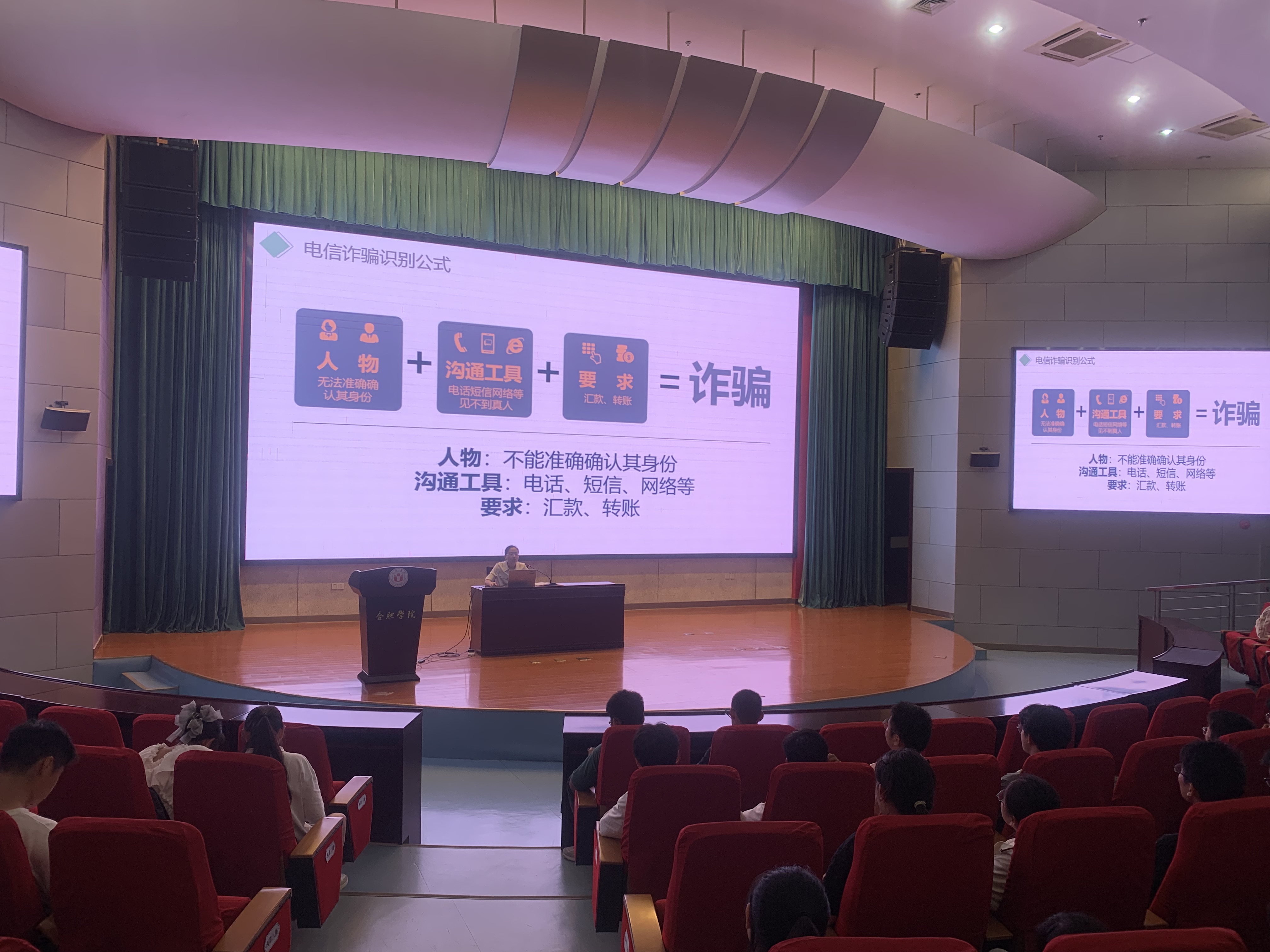 927日,院黨委書記蔡靈美從“什么是電信詐騙”“如何防范電信詐騙”“被詐騙后如何保障自身權(quán)益”等幾個方面為同學(xué)們總結(jié)了電信詐騙的起源、電信詐騙高發(fā)類型、電信詐騙趨勢等反電信詐騙方面的知識,結(jié)合實際案例向同學(xué)們講解了詐騙類型、詐騙手法、詐騙危害及詐騙應(yīng)對方法,希望同學(xué)們一定要增強反詐騙意識,提高反詐騙知識,牢記“天上不會掉餡餅”這個基本常識,做到不貪圖小利、不占小便宜、拒絕陌生電話和鏈接。最后強調(diào)自我防范的重要性,并提醒同學(xué)們一定要安裝注冊“國家反詐中心”APP,為自己加裝一道防火墻,進一步筑牢防騙反詐安全線。院資助工作負責(zé)人威力旺老師向新生們仔細講解了高校關(guān)于學(xué)生的各項資助政策,其主要分為國家資助、學(xué)校資助、助學(xué)貸款、學(xué)生成長和其他資助,加深了在場新生們對我校資助政策的了解。