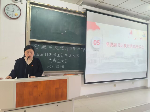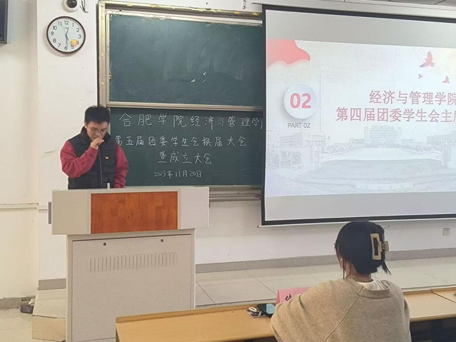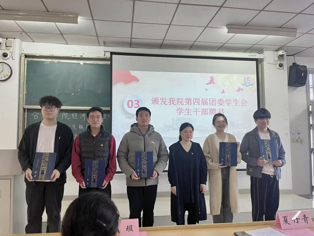 11月20日合肥學院經濟管理學院第五團委學生會暨成立大會于一期五棟101教室順利舉行。經濟與管理學院黨委副書記夏丹青、經濟與管理學院團委書記姚璇、經濟與管理學院第四屆成員以及第五屆學生會全體成員參加此次大會。
