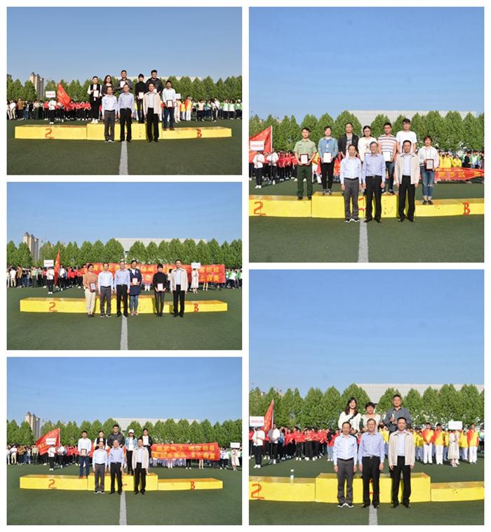 閉幕式開始,洪家友宣讀本次比賽結果:中國語言文學系、外國語言系、教育系分獲體質健康測試團體前三名;經濟系、建筑工程系、旅游系、生物與環境工程系、數學與物理系榮獲體育道德風尚獎;化學與材料工程系、藝術設計系、機械工程系、國旗班、研究生代表隊、留學生代表隊、教職工代表隊榮獲優秀組織獎;管理系獲體育節團體一等獎,電子信息與電氣工程系、經濟系獲體育節團體二等獎,建筑工程系、教育系、生物與環境工程系獲體育節團體三等獎;另外,電子系、計科系、管理系分獲田徑運動會團體前三名。王其東、劉建中等校領導為獲獎系部及各組織頒獎。