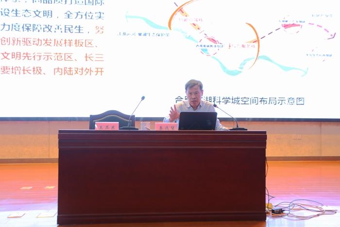 秦遠(yuǎn)望圍繞綜合性國(guó)家科學(xué)中心、品質(zhì)城市提升等方面講述如何實(shí)現(xiàn)合肥高質(zhì)量發(fā)展。他表示,合肥市正由中高速增長(zhǎng)轉(zhuǎn)為高質(zhì)量增長(zhǎng)階段,經(jīng)濟(jì)運(yùn)行呈現(xiàn)企穩(wěn)向好,穩(wěn)中趨優(yōu)的發(fā)展態(tài)勢(shì)。他認(rèn)為,實(shí)現(xiàn)合肥市高質(zhì)量發(fā)展要融入全球創(chuàng)新體系,建設(shè)綜合性國(guó)家科學(xué)中心,高標(biāo)準(zhǔn)規(guī)劃建設(shè)合肥濱湖科學(xué)城。尊重城市發(fā)展規(guī)律,提升城市功能品質(zhì),落實(shí)鄉(xiāng)村振興戰(zhàn)略,建設(shè)綠色生態(tài)美麗合肥。他強(qiáng)調(diào),當(dāng)前和今后一個(gè)時(shí)期,合肥市將以習(xí)近平新時(shí)代中國(guó)特色社會(huì)主義思想為指導(dǎo),全面貫徹落實(shí)黨的十九大精神,爭(zhēng)當(dāng)發(fā)展“領(lǐng)跑者”,加快建設(shè)長(zhǎng)三角世界級(jí)城市群副中心,奮力打造具有國(guó)際影響力的創(chuàng)新之都。最后,他建議我校高層次人才和青年教師們多去合肥市相關(guān)產(chǎn)業(yè)平臺(tái)、合肥市周邊鄉(xiāng)村深入考察并開(kāi)展合作。