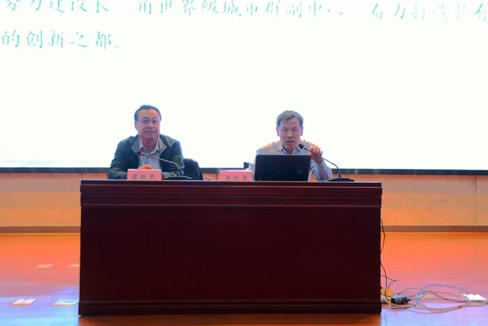 “隨著合肥學(xué)院的發(fā)展,取得的成就,我們合肥人越來(lái)越喜歡上這所我們自己的大學(xué)”,秦遠(yuǎn)望主任在這句溫暖的開(kāi)場(chǎng)白后,首先從空間布局、基礎(chǔ)設(shè)施等方面介紹合肥經(jīng)濟(jì)社會(huì)發(fā)展概況。他指出,合肥市歷史悠久,人文底蘊(yùn)深厚,承東啟西連南接北的地理位置奠定了經(jīng)濟(jì)發(fā)展有利的區(qū)位優(yōu)勢(shì)。在科技創(chuàng)新方面,合肥高校一直與國(guó)內(nèi)外一流高校和知名科研院所進(jìn)行戰(zhàn)略合作,致力于打造高端協(xié)同創(chuàng)新平臺(tái),探索一條“政產(chǎn)學(xué)研用”協(xié)同創(chuàng)新的道路。