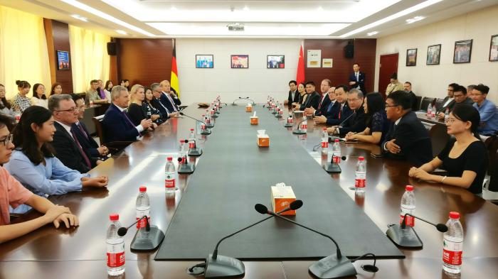 9月21日上午,德國(guó)前總統(tǒng)、全球中小企業(yè)聯(lián)盟主席、我校榮譽(yù)教授克里斯蒂安·武爾夫(Christian  Wulff)攜代表團(tuán)一行訪問(wèn)我校,安徽大學(xué)黨委書記蔡敬民,德國(guó)前交通、建筑與住房部部長(zhǎng)庫(kù)爾特·博德維希(Kurt  Bodewig)等陪同到訪。校黨委書記、校長(zhǎng)王其東等領(lǐng)導(dǎo),大陸班、中德物流管理等我校中德合作專業(yè)學(xué)生及部分留德回國(guó)教師代表共同參與了接待。