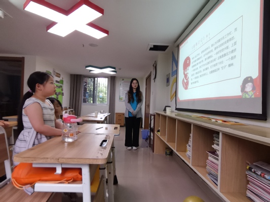 7月4日,合肥學院教育學院“七彩童年,‘育’你相伴”三下鄉團隊來到濱湖和園社區開展社會實踐活動,志愿者朱思宇和周琴為孩子們帶來了“弘揚雷鋒精神,傳頌英雄故事”主題課程。 雷鋒精神,人人可學;奉獻愛心,處處可為。六十年來,雷鋒精神哺育和激勵了一代又一代人成長,為讓雷鋒精神在中華大地不斷閃耀光芒,繼承革命先輩的優良傳統,培養學生愛黨、愛國、愛社會主義的樸素情感,我們設計了本次課程內容。在課程開始時,朱老師呈現了雷鋒的卡通形象,讓同學們猜測本節課學習的榜樣人物是誰,同學們對于雷鋒的形象并不陌生,都踴躍回答,“雷鋒!”