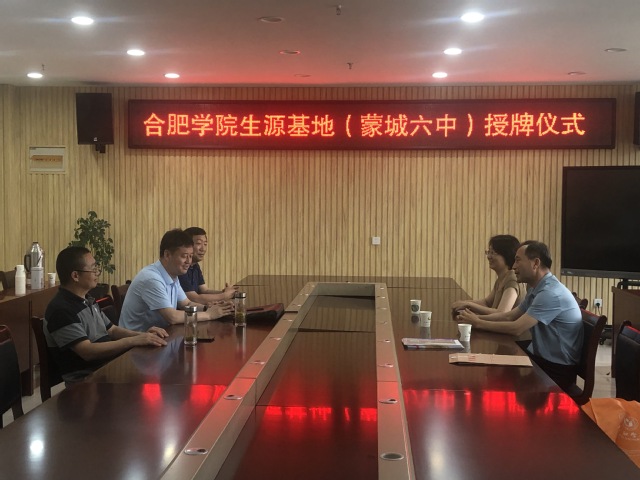 2023年6月19日上午,我院與蒙城第六中學(xué)舉行了優(yōu)質(zhì)生源基地簽約及授牌儀式。宋玉軍院長(zhǎng)、鄭嬗婷副院長(zhǎng)、實(shí)驗(yàn)實(shí)訓(xùn)中心主任胡遲一行前往蒙城第六中學(xué),受到了蒙城第六中學(xué)校長(zhǎng)傅衛(wèi)剛一行熱情地接待。