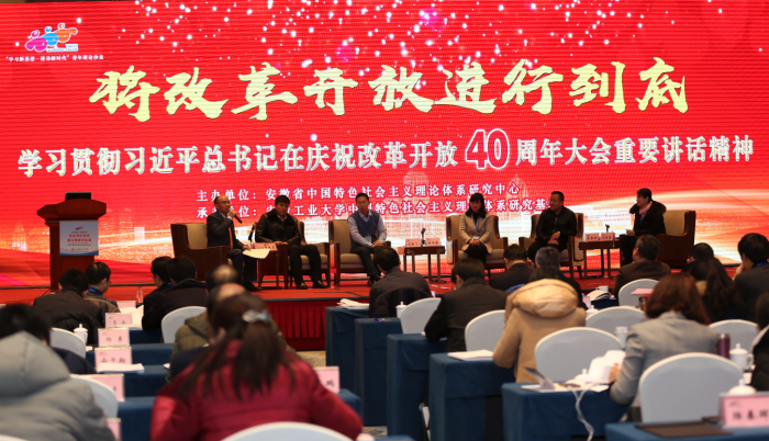 為慶祝改革開放40周年,激勵和引導廣大青年不忘初心、牢記使命、永遠奮斗,2018年12月29日,由安徽省中國特色社會主義理論體系研究中心主辦、安徽工業大學中國特色社會主義理論體系研究基地承辦的“學習新思想·建功新時代”青年理論沙龍第五期研討活動在馬鞍山舉行。省委宣傳部副部長、省新聞出版局(省版權局)局長宏永平出席。安徽工業大學黨委書記劉新悅致辭,副校長林鐘高主持開幕式。