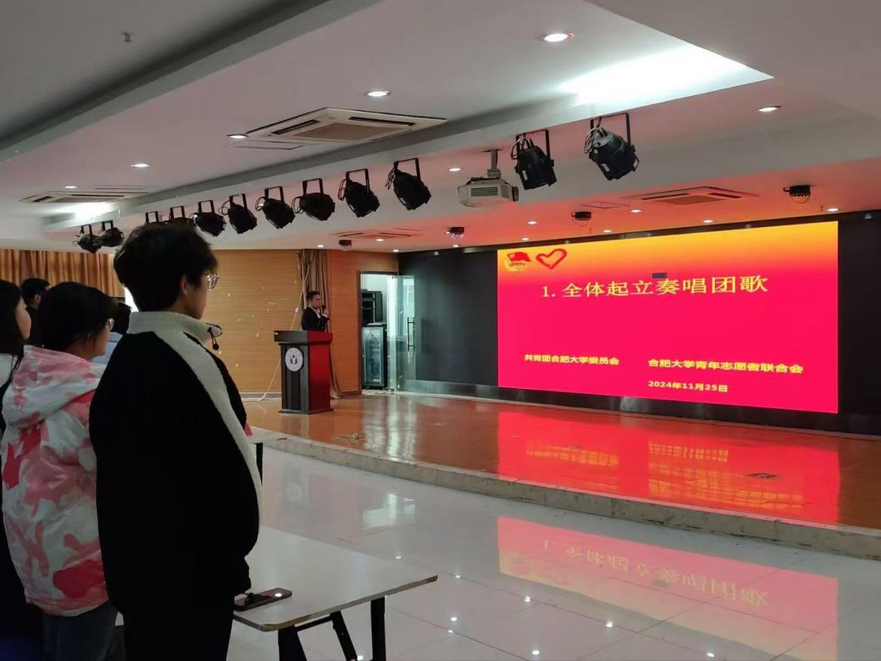 2024年11月25日中午12:30, 合肥大學青年志愿者聯合會第一屆全體例會在合肥大學大學生活動中心(一)召開。出席本次會議的有校團委韓鈺老師及合肥大學青年志愿者聯合會(以下簡稱青志聯)全體成員,本次會議由青志聯執行主席唐旭磊主持。