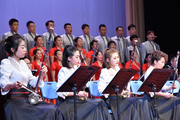 本場音樂會在一首精彩的大合唱《郎在對門唱山歌》中拉開了序幕。接著,一首《五哥放羊》向觀眾展示出一幅陜北高原郎情妾意的畫面,樂聲時而高亢,時而悠揚,使在場觀眾沉醉于其中。隨后的二胡齊奏《賽馬》以磅礴的氣勢、熱烈的氣息、奔放的旋律瞬間將現場氣氛推向高潮。無論是氣宇軒昂的賽手,還是奔騰嘶鳴的駿馬,都被二胡的旋律表現得惟妙惟肖,向我們展現了一幅生動熱烈的賽馬場面。而節目《喜迎新》則將現場觀眾引入另一番喜氣洋洋的情景中去,動感的歌詞、歡快的曲風,讓人心情開懷,情不自禁的跟著節拍一起輕聲附和。接下來的女聲獨唱《一杯美酒》則向大家展示了熱情的維吾爾民族風情,令現場聽眾為之向往。《這山唱那山》中演員以其靚麗的外表、扣人心弦的樂聲深深打動了每一位觀眾的心。國家一級演員龔俊莉為大家帶來的《我和我的祖國》憑借著其嘹亮動聽的歌聲點燃了每一位聽眾濃烈的愛國情,再次將現場氣氛推向高潮。最終,音樂會在一曲民歌合唱《天南地北茉莉花》中完美謝幕,表演者們用不同的腔調為我們詮釋了一朵別樣的茉莉花。