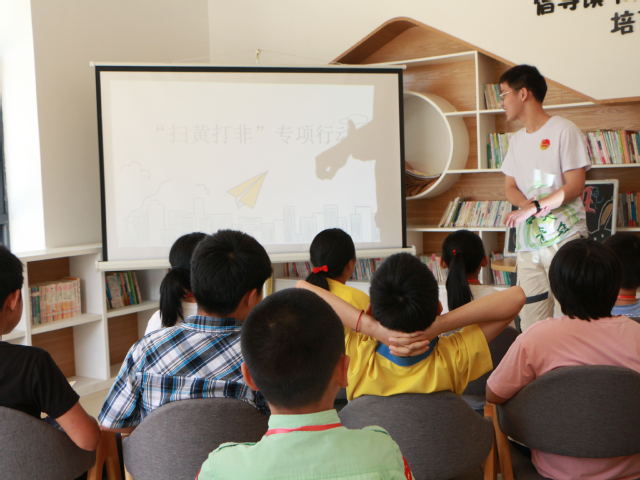 上午,志愿者帶領各班級開展了“掃黃打非”、普通話推廣以憲法學習的主題教育活動,志愿者通過PPT展示的方式向同學們推廣普通話,強調了憲法學習的必要性和重要性。