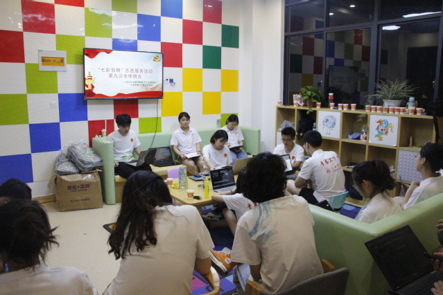 晚上九點,全體隊員于青少年活動室“七彩假期”志愿服務活動第次全體例會,隊長汪欣楠指出了離開凌安村返校過程中可能會出現的現實問題,并提出了解決的辦法,也表明了志愿服務活動結束后的后續問題。全體成員討論確定了告別儀式的流程。