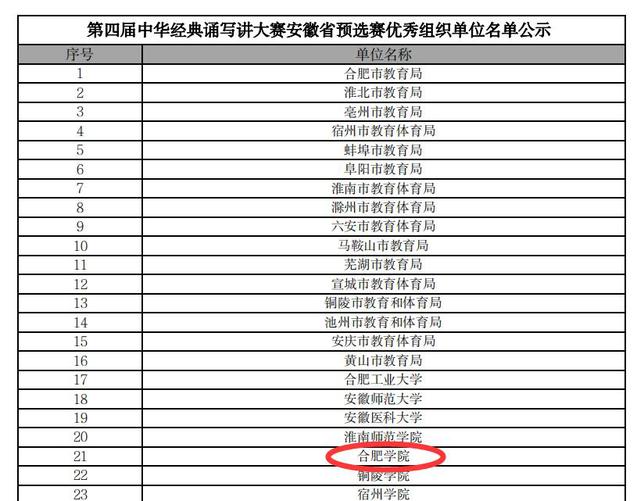 為落實全國語言文字會議精神,全面深入實施中華經典誦讀工程,教育部、國家語言文字工作委員會組織開展了第四屆中華經典誦寫講大賽,安徽省舉辦了預選賽,我校師生積極參賽,多項作品在安徽省預選賽中獲獎,我校榮獲優秀組織獎。