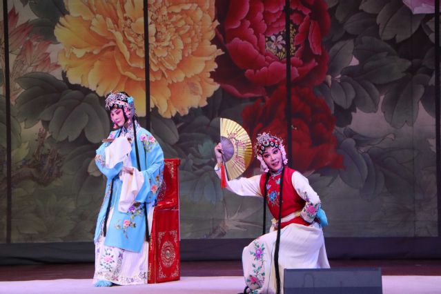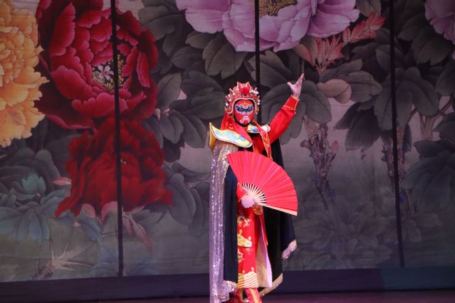 演出共分四場。首場京劇《賣水》源出山西蒲州梆子《火焰駒》“賣水”一折,演員通過靈動的眼神、甜脆的嗓音、恰到好處的舞姿完美的展現(xiàn)出天真活潑的小丫鬟形象;徽劇《借扇》、京劇《穆柯寨》,演員們威風(fēng)凜凜,以節(jié)奏強烈明快、動作行云流水的打戲營造出身臨其境的真實感,現(xiàn)場生動活潑;《變臉》節(jié)目中,演員伴隨著鏗鏘有力的音樂不斷更換人物面具,并下場與觀眾熱情互動,現(xiàn)場掌聲不斷。