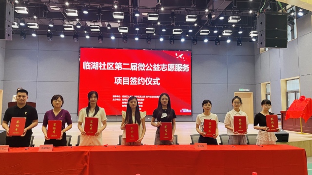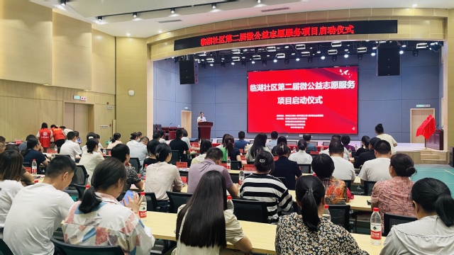 627午,臨湖社區第二屆微公益志愿服務項目啟動儀式暨校地志愿服務共建基地揭牌儀式臨湖社區黨群服務中心舉行校團委副書記李妍妍、團委學生社團管理辦公室負責人方淑穎應邀參與活動。