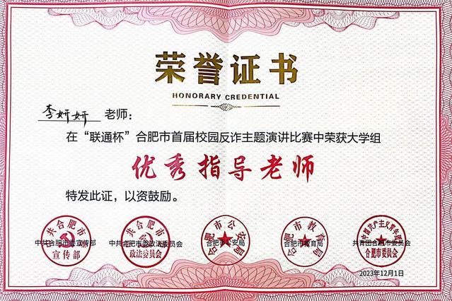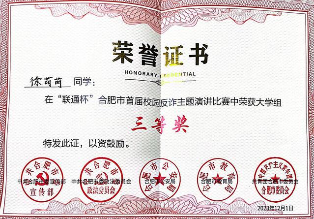我校學子榮獲合肥市首屆校園反詐主題演講比賽三等獎
