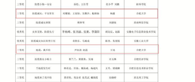 近日,由安徽省地震局、安徽省教育廳、共青團安徽省委、安徽省科學技術協會共同舉辦安徽省第六屆大學生防震減災科普作品征集大賽圓滿落幕。我校學生作品《地震,我不怕》與《防震減災,平安常在》榮獲省級三等獎