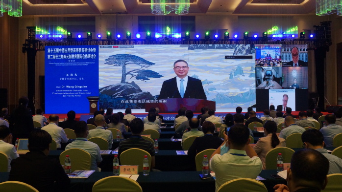 9月28日下午,以“創新與高質量發展”為主題的第十五屆中德應用型高等教育研討會暨第二屆長三角雙元制教育國際合作研討會,在合肥市與德國奧斯納布呂克市共同開幕。會議以線上線下相結合的形式舉行。全國政協副主席、中國科學技術協會主席萬鋼出席并講話,德國前總統克里斯蒂安·武爾夫、安徽省省長王清憲、德國下薩克森州州長施特凡·魏爾分別致辭。安徽省委教育工委書記錢桂侖主持開幕式。合肥市委副書記、市長羅云峰,安徽省教育廳副廳長儲常連、張庚家等出席開幕式。