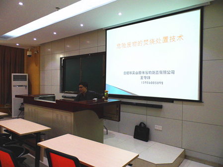 2015429上午10時,合肥市吳山固廢處置有限公司的王守林工程師圍繞危險廢物的焚燒處置技術做了一場精彩報告。王總先簡單介紹了危險廢棄物的定義和一些常規處置手段,接著著重剖析了焚燒的技術要點,包含焚燒爐的類型、技術指標和焚燒系統工藝三大模塊,最后就焚燒產生的劇毒物質二噁英的控制方式向我們進行了詳細的介紹。我院環境工程專業研究生以固廢為主要的研究方向,王總的講座對于學生們豐富課外知識和了解固廢的處置工藝有很大的幫助。下周同學們還將去吳山固廢處置公司現場實地學習。實地考察學習環節是我校專業碩士培養的一大亮點。