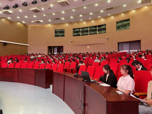教師代表崔璨發表講話,以自身經歷引入主題,勉勵同學們成長為身心健康的人。她指出,同學們在大學生活中應不斷拓展視野,把握機會,迎接大學中新的挑戰。同時,大學生活中除了學業,與人交往也是一門必修課,在與他人交流交往中學會認識自我,成就更好的人生。